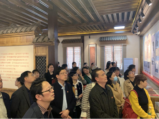 在金家堤党支部陈列馆,学院党委书记黄晔带领全体党员重温入党誓词。黄晔指出,中共益阳县兰溪金家堤支部,是益阳境内第一个党支部,也是湖南最早建立的农村党支部,是我们益阳的红色基因库。红色基因是坚定理想信念的指路明灯,我们要从中汲取力量、坚定理想、淬炼信念,达到“学党史、感党恩、强信念、跟党走”的活动目标,进一步激发我们奋斗“十四五”新征程的斗志,全面推动学院事业发展,为学校“双一流”建设做出新的更大贡献。